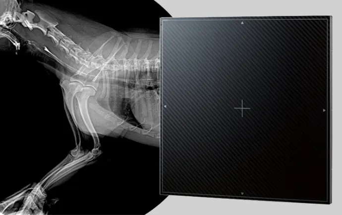 The 17x17 flat panel DR offers the newest Cesium (Csi) TFT interface. Cesium is more sensitive to radiation and requires less dose to achieve the same image quality and contrast resolution. The larger 17x17 inch panel makes patient position easier without the need to rotate the panel as is common with older 14x17 CR and film cassettes. The panel offers Automatic Exposure Detection (AED) technology and will work with any viable xRay source. The fast tethered cable connection allows you to read images in just 6 sec. This is a cost-effective and workflow-efficient approach to veterinary digital radiographic imaging for any clinic.